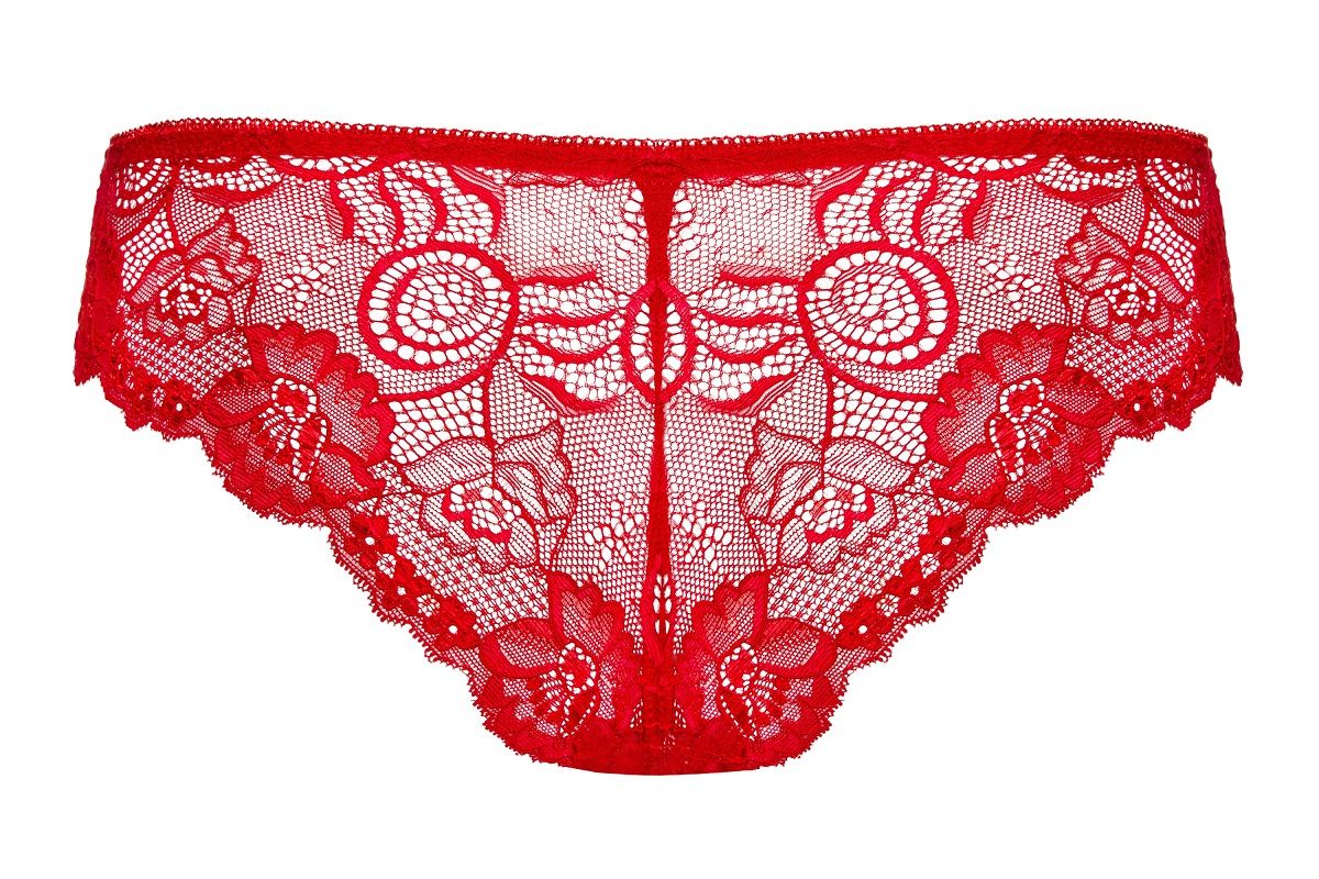 Красные кружевные трусики Secred с цветочным узором.