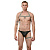 Мужской костюм «Танцор». Выполнен в черно-бежевом цвете и состоит из 3 предметов. В комплекте: трусы-тонги, подвязка на ногу, портупея.