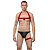 Мужской костюм «Танцор». Выполнен в черно-красном цвете и состоит из 3 предметов. В комплекте: трусы-тонги, подвязка на ногу, портупея.