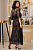 Длинный пеньюар с широким рукавом, выполнен из французского кружевного полотна с нашитыми пайетками в цвет кружева. Фестон кружева расположен по краям бортов, низу рукавов и низу изделия. Линия талии регулируется за счет атласного пояса, концы которого декорированы кружевом.