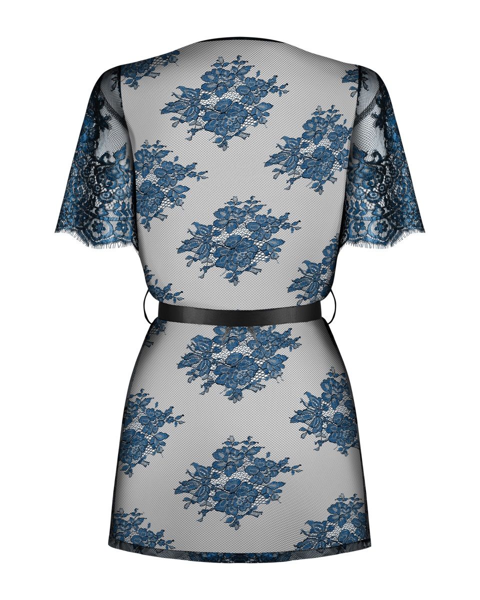 Восхитительный короткий пеньюар из коллекции Yassmyne из прозрачного кружева с цветочным рисунком, на талии пояс из атласной ленты.