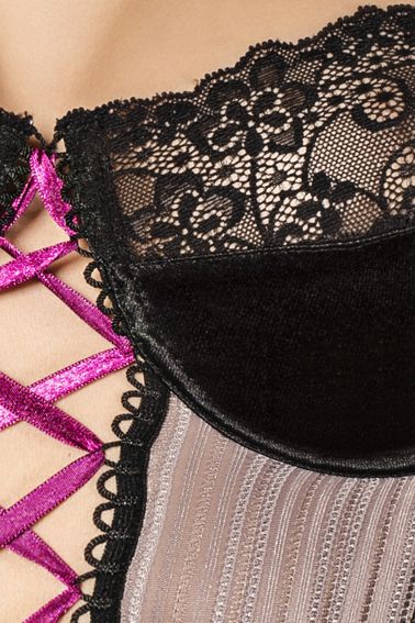 Корсет с прозрачными вставками и шнуровкой Fabio - смелый наряд для страстной ночи или жаркого танца перед любимым.