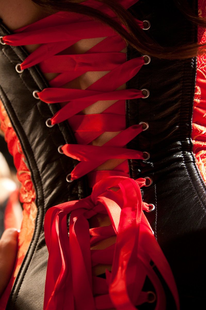 Красный корсет с кожаными вставками KELLY