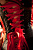 Корсет без бретелей и глубоким декольте. Размер регулируется с помощью шнуровки на спине. Сочетание красного и черного цветов одно из самых сексуальных сочетаний! Ваш возлюбленный точно не устоит перед Вами. В комплекте также трусики-стринги и отстегивающиеся резинки для чулков. В комплекте: корсет с пажами, трусики-стринги.