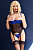 -Корсет мягкий из прозрачной вуали и синего кружева с четверть открытым лифом на косточках, с тонким поролоном, между чашек подвеска-сердечко с кристаллами, бретельки регулируются по длине, к концам подола крепятся регулируемые по длине пажи для чулок, крепления пластиковые и фурнитура