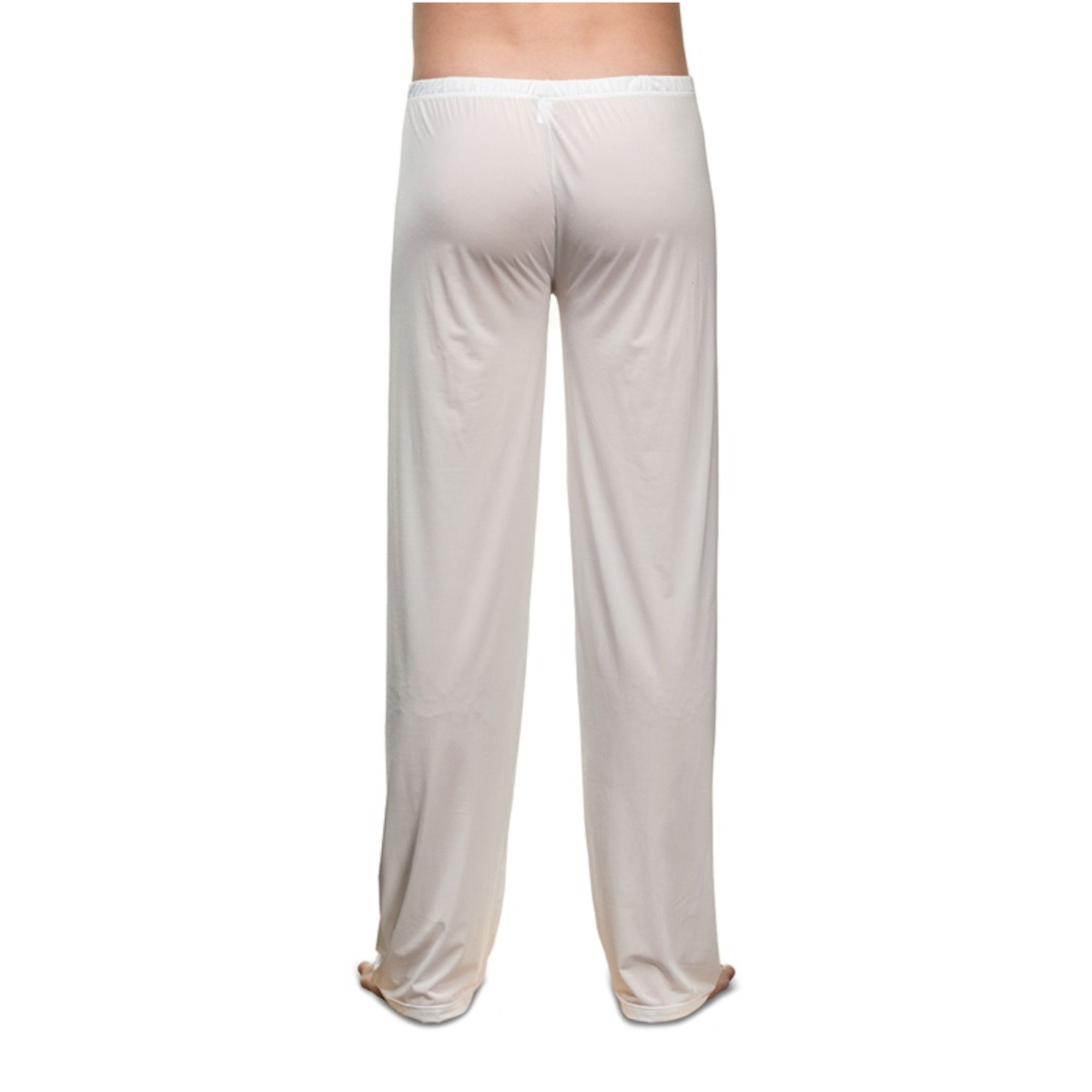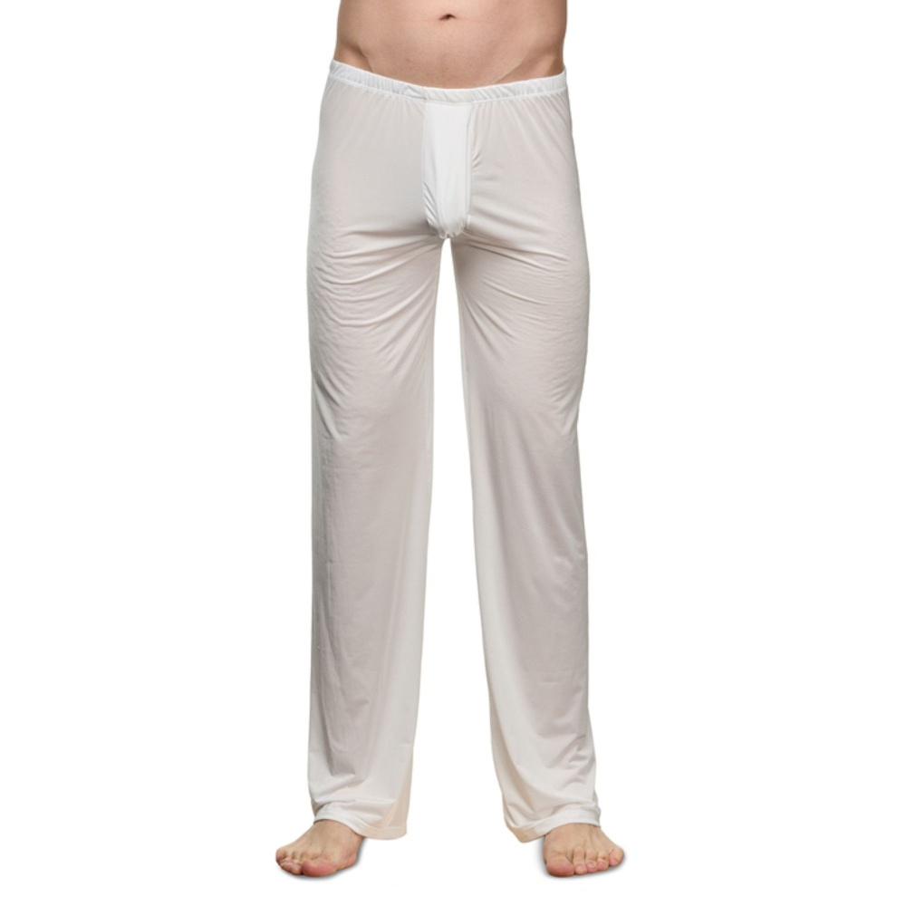 Белые полупрозрачные мужские брюки.