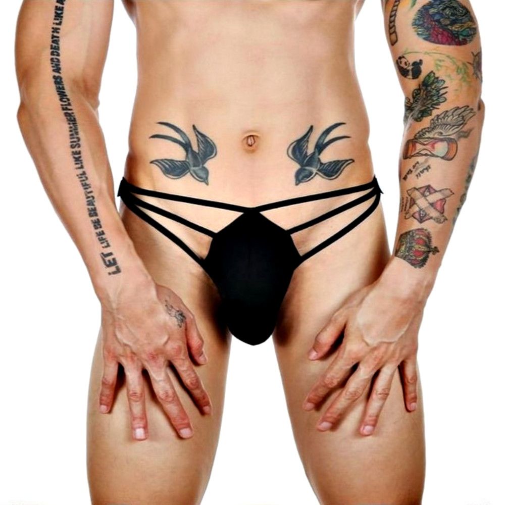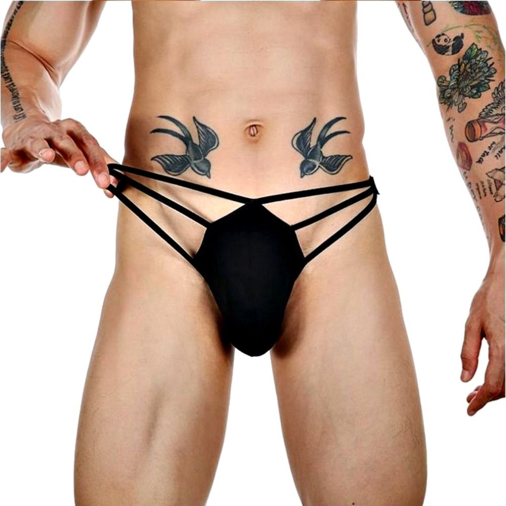 Черные сексуальные трусы-стринги на тонких бретелях