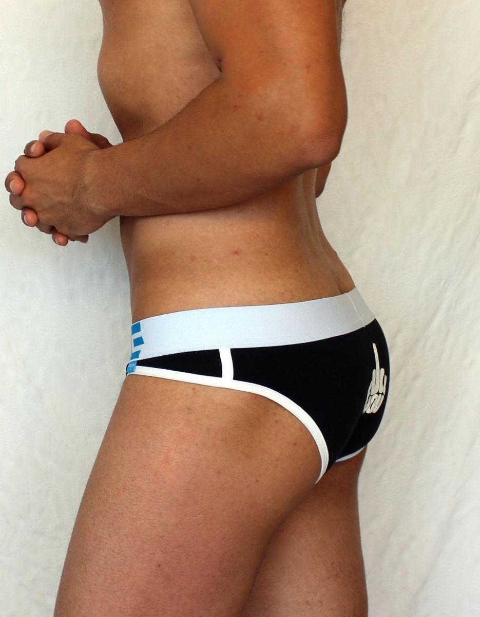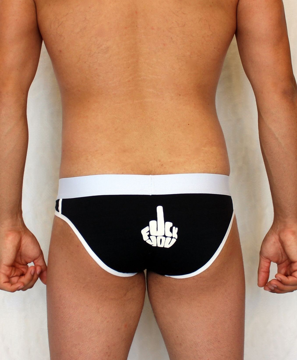 Черные трусы-слипы с провокационным принтом на задней части.