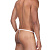 Фиолетовые трусы-стринги с принтом и контрастной отделкой.