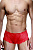 Ярко-красные хипсы-трусы для мужчин, с низкой посадкой. Зад и бока кружевные, а спереди однотонная полупрозрачная ткань.