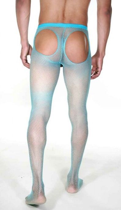 Мужские колготы в мелкую сеточку. На колготах есть вырезы в интимной зоне и на ягодицах. Ткань, из которой изготовлены колготы, отлично тянется и не будет доставлять никакого дискомфорта.