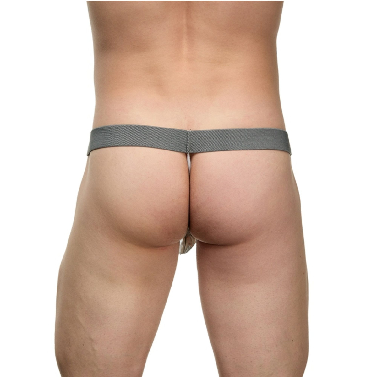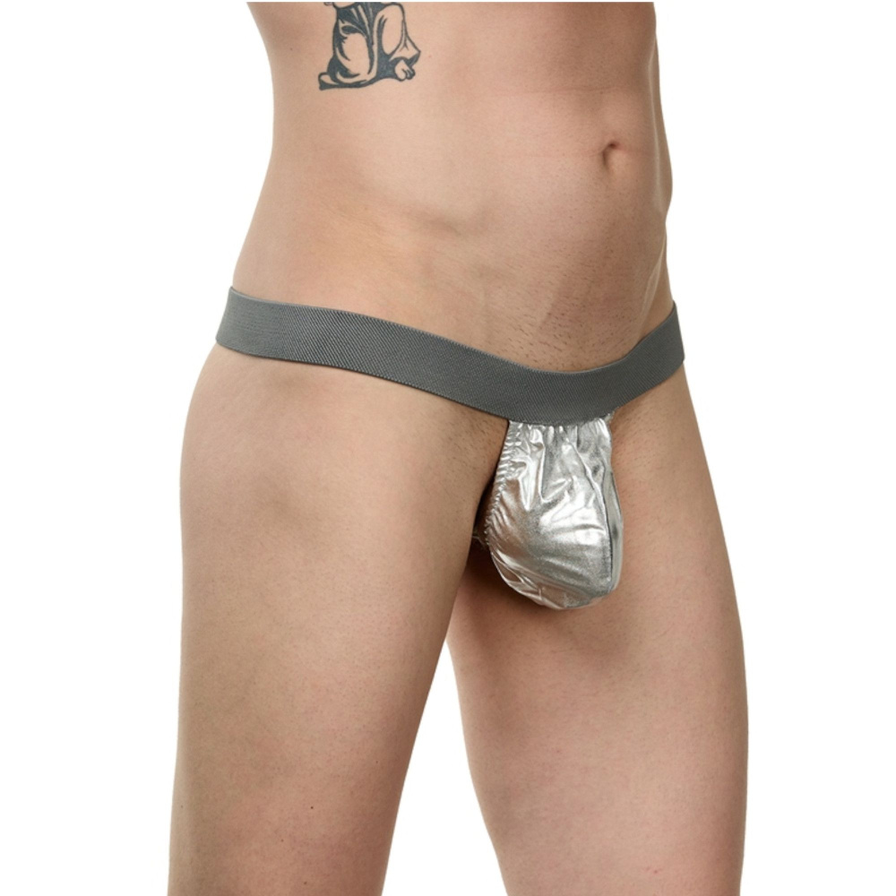 Мужские серебристые трусы-стринги.