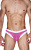 Мужские бразилиана цвета фуксия из полупрозрачного легкого тянущегося материала. Кант из кружевной белой ленты.