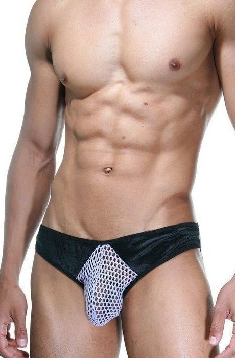 Мужские трусы-слипы из сетки с черными вставками