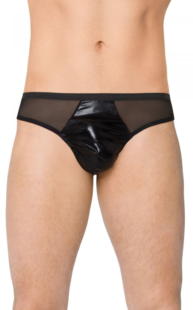 Мужские трусы-стринги из сетки и материала wet-look.