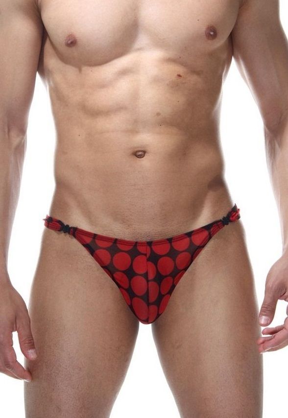 Мужские трусы-тонги в крупный красный горох