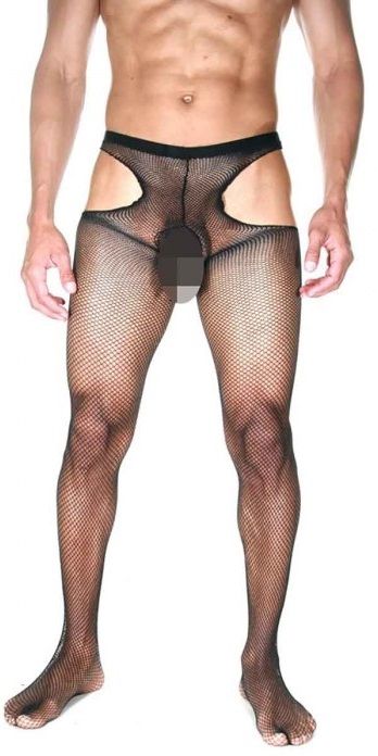 Оригинальные мужские колготы в мелкую сетку с интимными вырезами