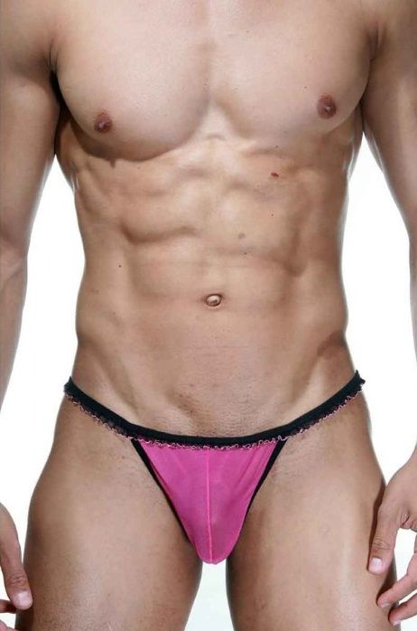 Купить Розово-черные трусы-стринги с рюшей La Blinque по лучшей цене с доставкой - секс-шоп Ynunu.ru
