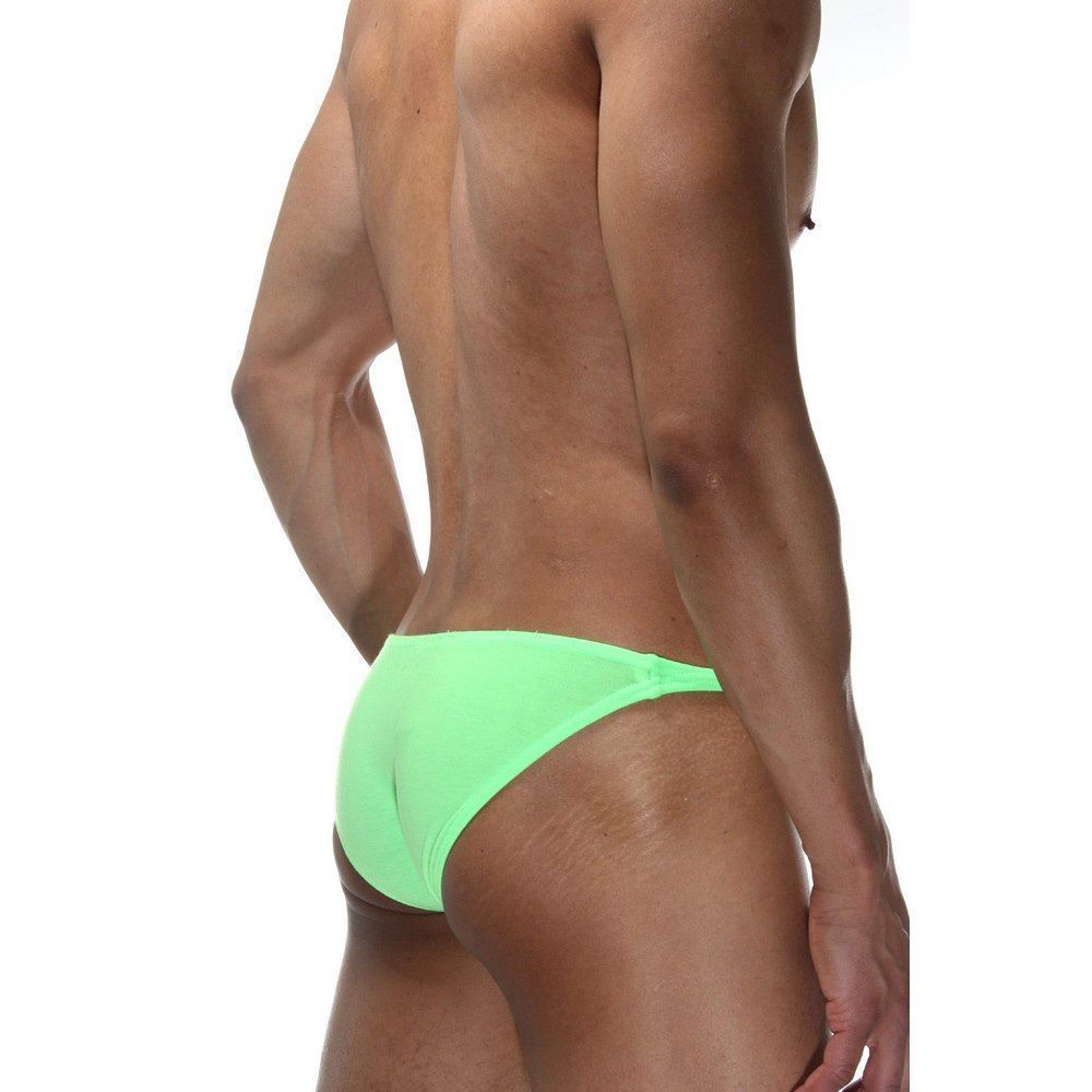 Салатовые мужские трусы-слипы с узким бочком.