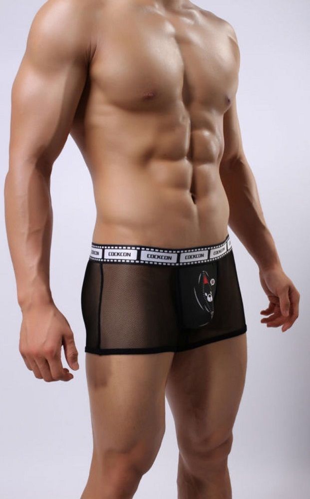 Сетчатые трусы-боксеры Cockcon Trunks с принтом на гульфике.