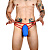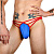 Синие сексуальные трусы-стринги на тонких красных бретелях.