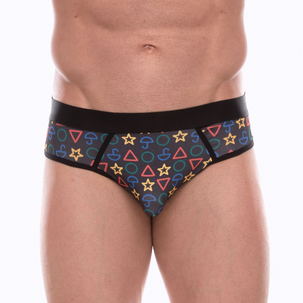 Купить Темно-серые мужские трусы-джоки с принтом в виде цветных значков Don Moris по лучшей цене с доставкой - секс-шоп Ynunu.ru