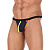 Темно-синие сексуальные трусы-стринги с оранжевой и салатовой окантовкой