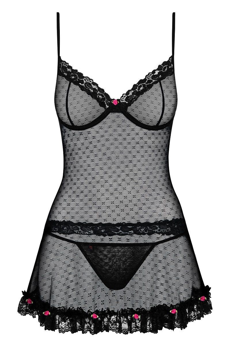 Купить Бэби-долл Piccorosa с мелкими розочками Obsessive по лучшей цене с доставкой - секс-шоп Ynunu.ru