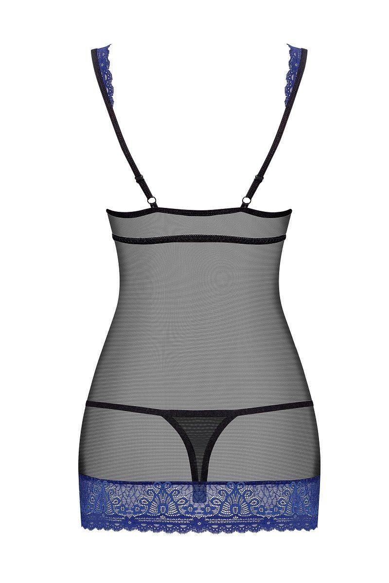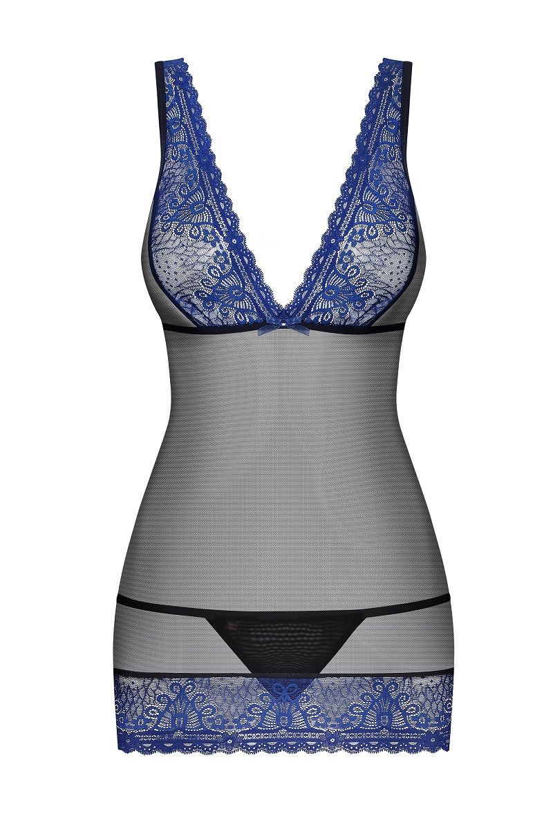 Купить Облегающая сорочка с синим кружевом Obsessive по лучшей цене с доставкой - секс-шоп Ynunu.ru