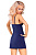 Сорочка из плотного стрейч-атласного материала насыщенного темно-синего цвета с легким перламутром, чашка мягкая, украшена вышивкой, золотые полосы визуально стройнят фигуру, в комплект входят трусики. В комплекте: сорочка, трусики-стринги.