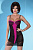 Невероятно соблазнительная версия нижнего белья. Верх комбинации пошит из слегка полупрозрачной черной ткани по бокам и пурпурной эластичной вставки на чашках и в середине. На бюсте и в нижней части придающий воздушности декор из черного кружева. Бретели спереди соединяются в одно целое из трех эфирно тонких ленточек. Задняя часть из полупрозрачной ткани. В комплекте чувственные стринги. В комплекте: сорочка, трусики-стринги.