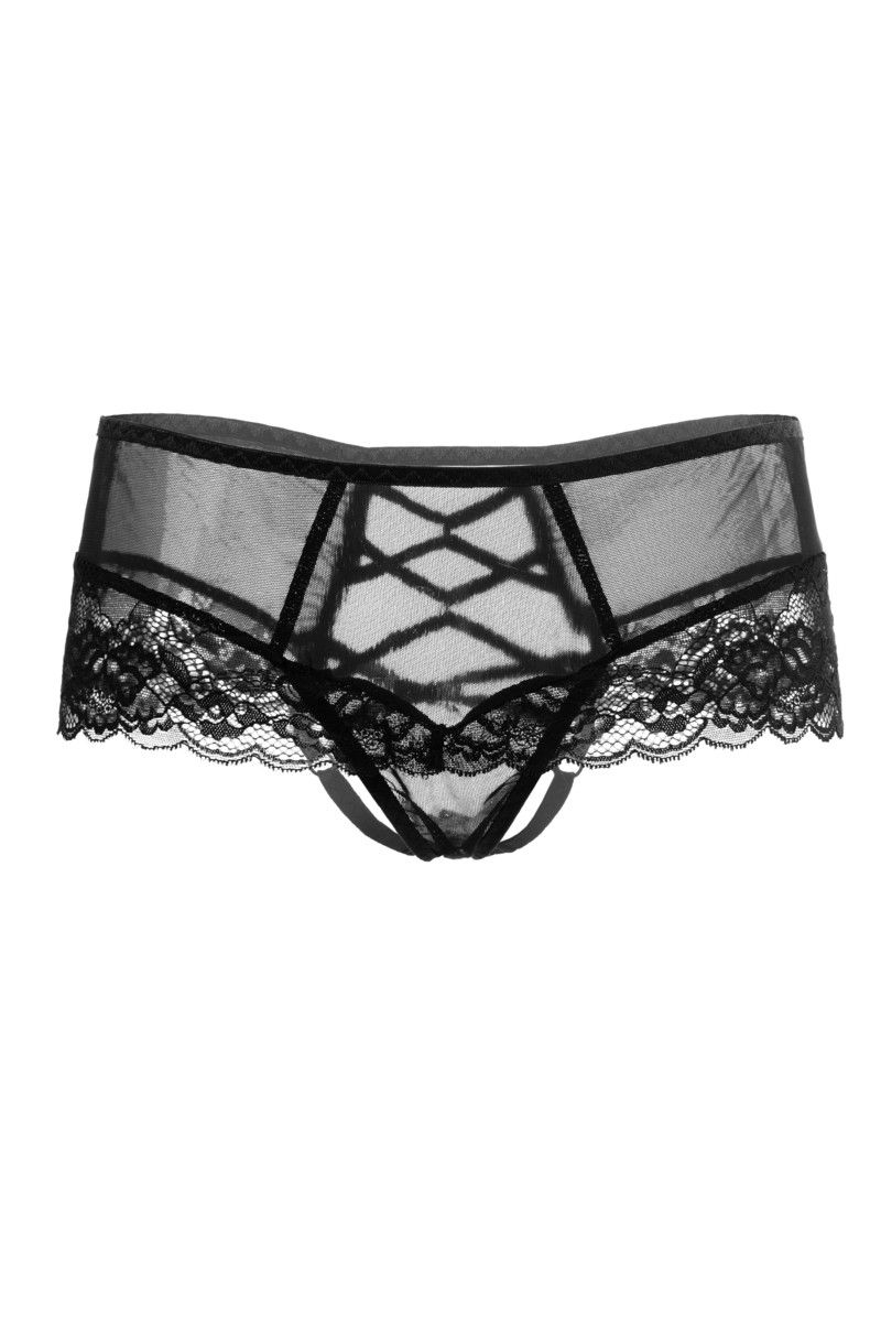 Яркое сочетание изысканного кружева и смелой шнуровки делает эротические трусики Cheryl от Erolanta незаменимым атрибутом интригующего образа. Эластичная сетка, дополненная вставками из нежного кружева, соблазнительно облегает бедра и расставляет на них аппетитные акценты. Эффектная шнуровка пробуждает смелые фантазии. Миниатюрные кольца и регуляторы на внутренних перемычках обеспечивают комфортную посадку. А дизайн доступа к интимной зоне позволяет наслаждаться игрой, не снимая при этом трусики.