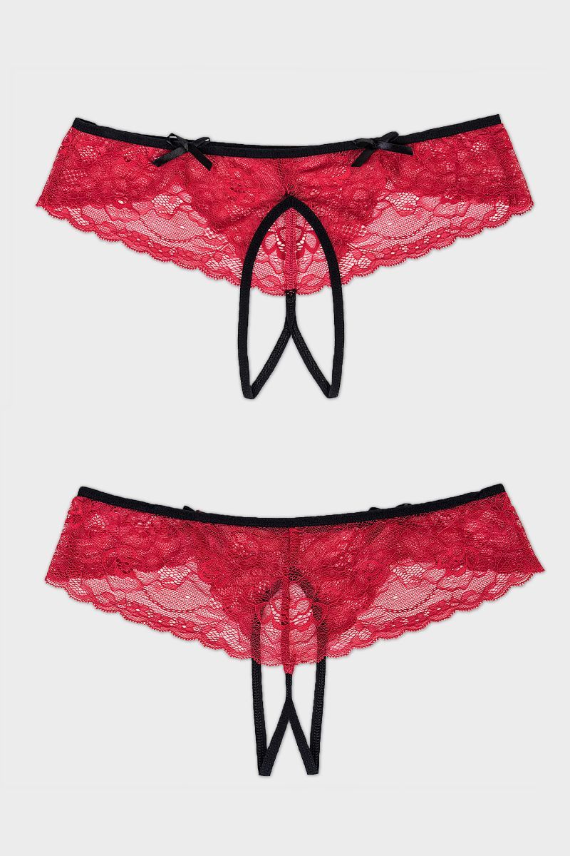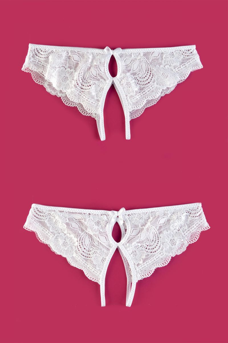 Эти оригинальные трусики даже не нужно снимать, если вас обоих всецело охватит страсть. Откровенный разрез, начинающийся от зоны бикини и заканчивающийся где-то над ложбинкой попки, откроет любимому доступ ко всем вашим прелестям.