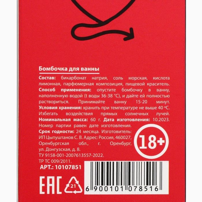 Бомбочка для ванны «Для плохой девочки» с ароматом спелой вишни.