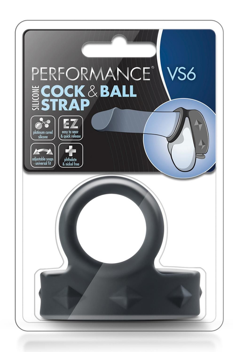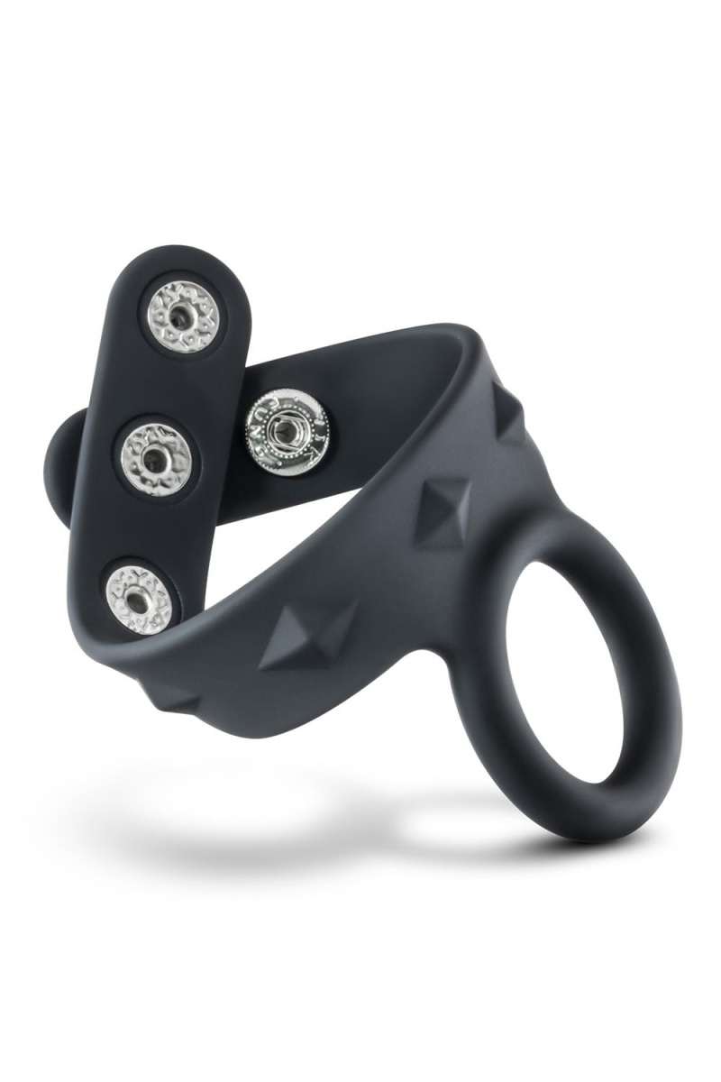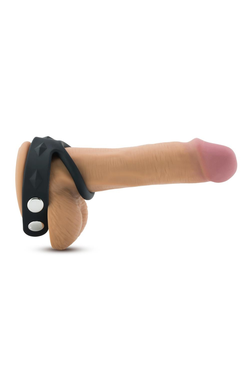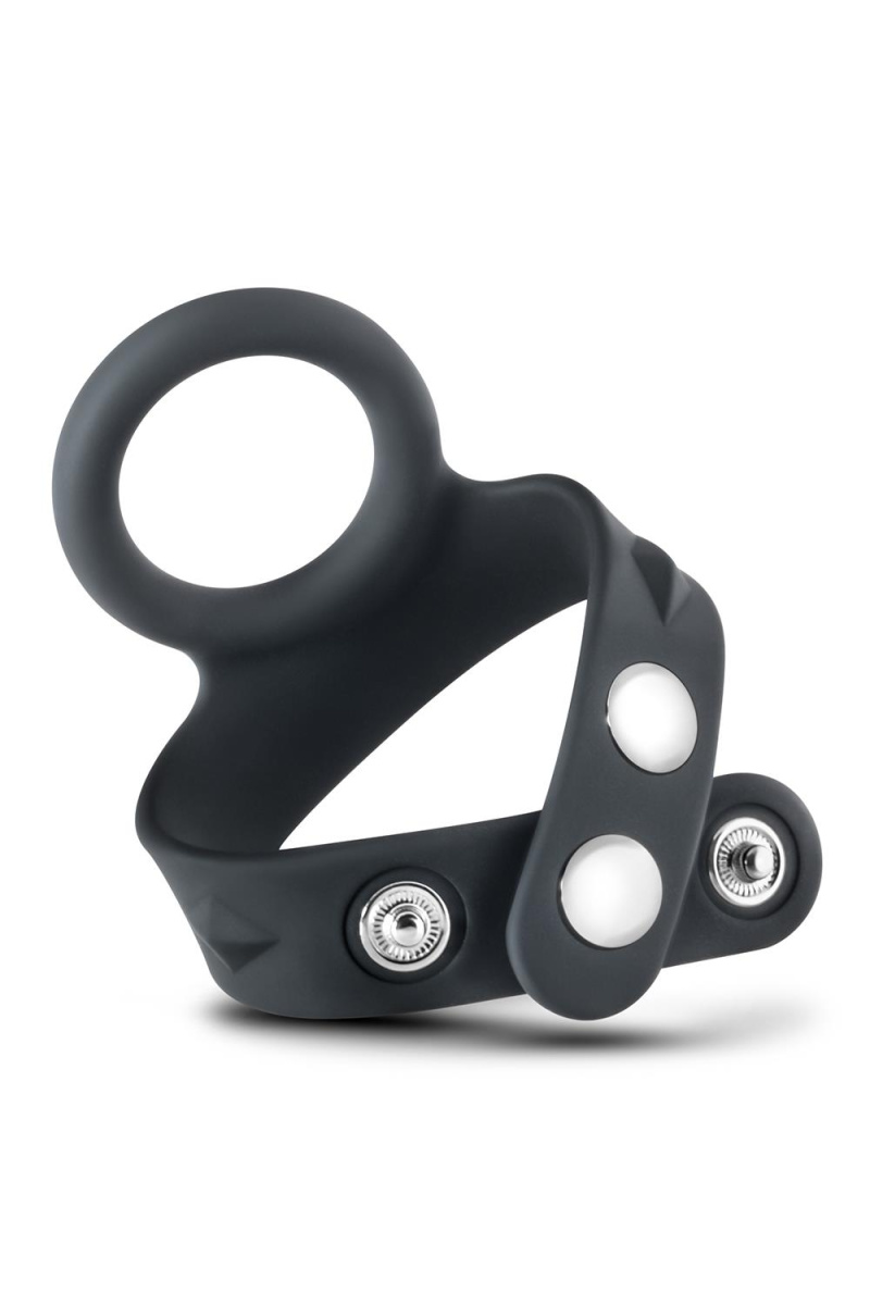 Купить Черное эрекционное кольцо с подхватом мошонки на кнопках VS6 Blush Novelties по лучшей цене с доставкой - секс-шоп Ynunu.ru