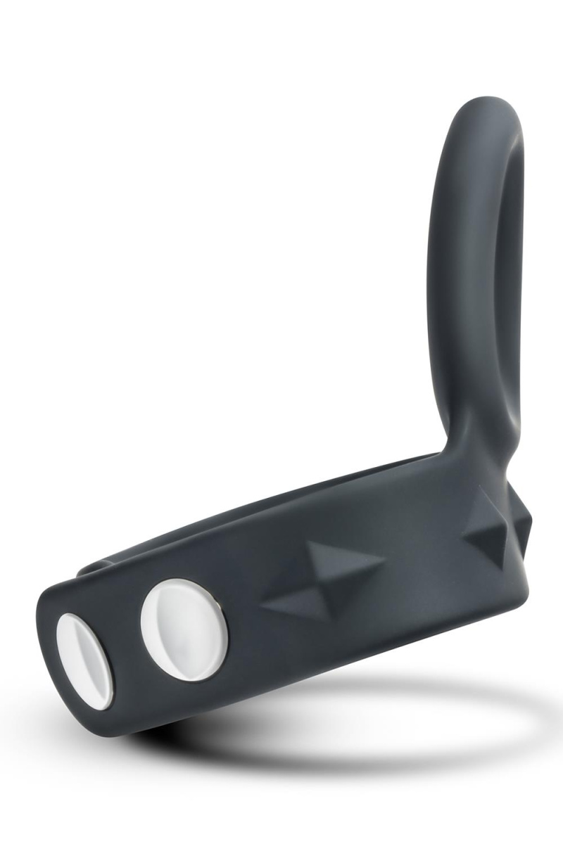 Черное эрекционное кольцо с подхватом мошонки на кнопках VS6.