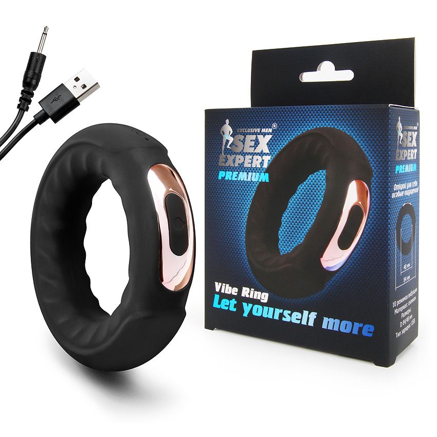 Купить Черное эрекционное перезаряжаемое виброкольцо Sex Expert по лучшей цене с доставкой - секс-шоп Ynunu.ru