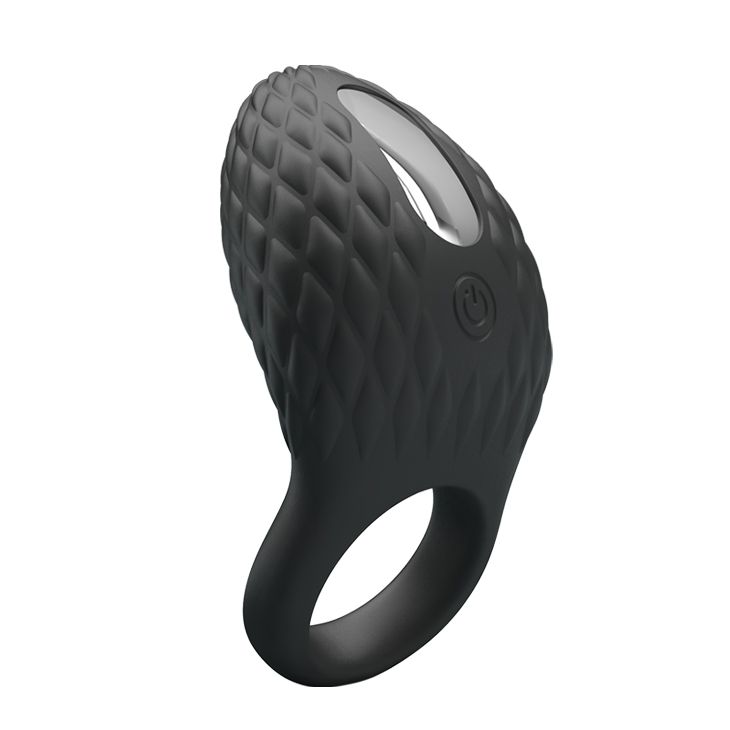 Черное эрекционное виброкольцо с рельефным дизайном Heloise