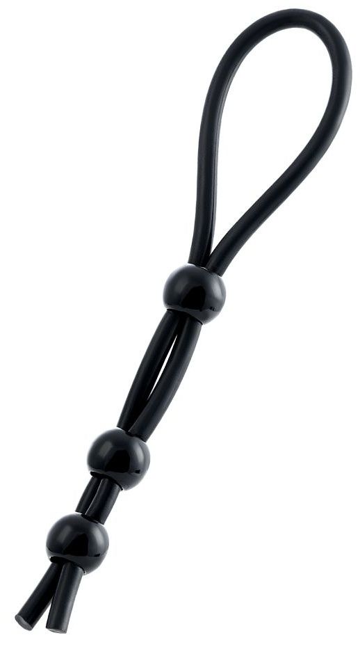 Черное лассо на пенис с тремя бусинами