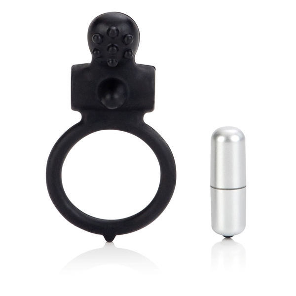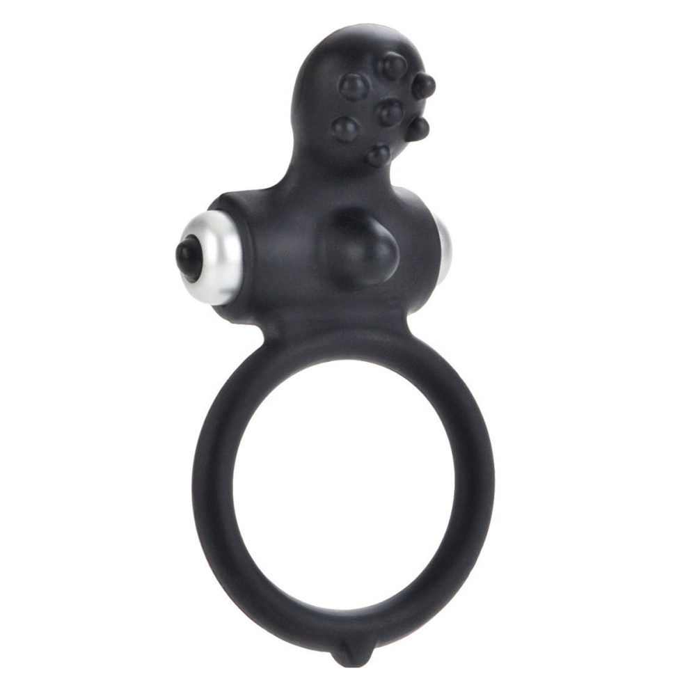 Эрекционное виброкольцо черного цвета, изготовленное из качественного безопасного силикона. Имеет клиторальный стимулятор в виде мягких шипов для стимуляции партнерши. Съемная вибропуля позволяет использовать игрушку как в режиме вибрации, так и без нее. Режим вибрации включается кнопкой в основании вибропули. Эластичный материал позволяет растягивать кольцо до нужного диаметра. Диаметр кольца в не растянутом состоянии - 3,7 см.