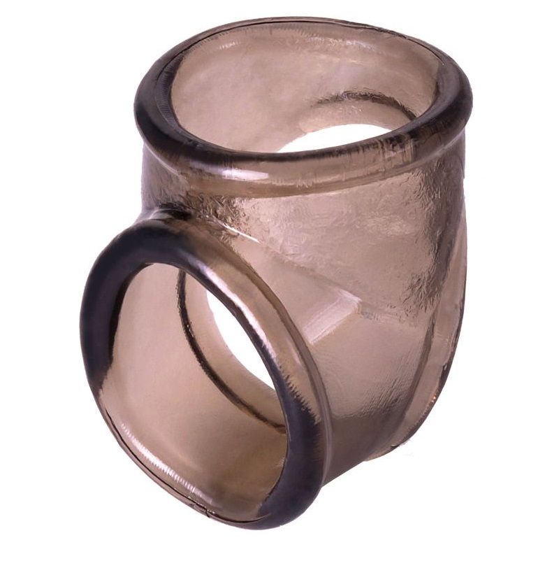 Дымчатое эрекционное кольцо с фиксацией мошонки