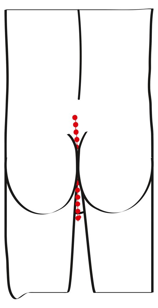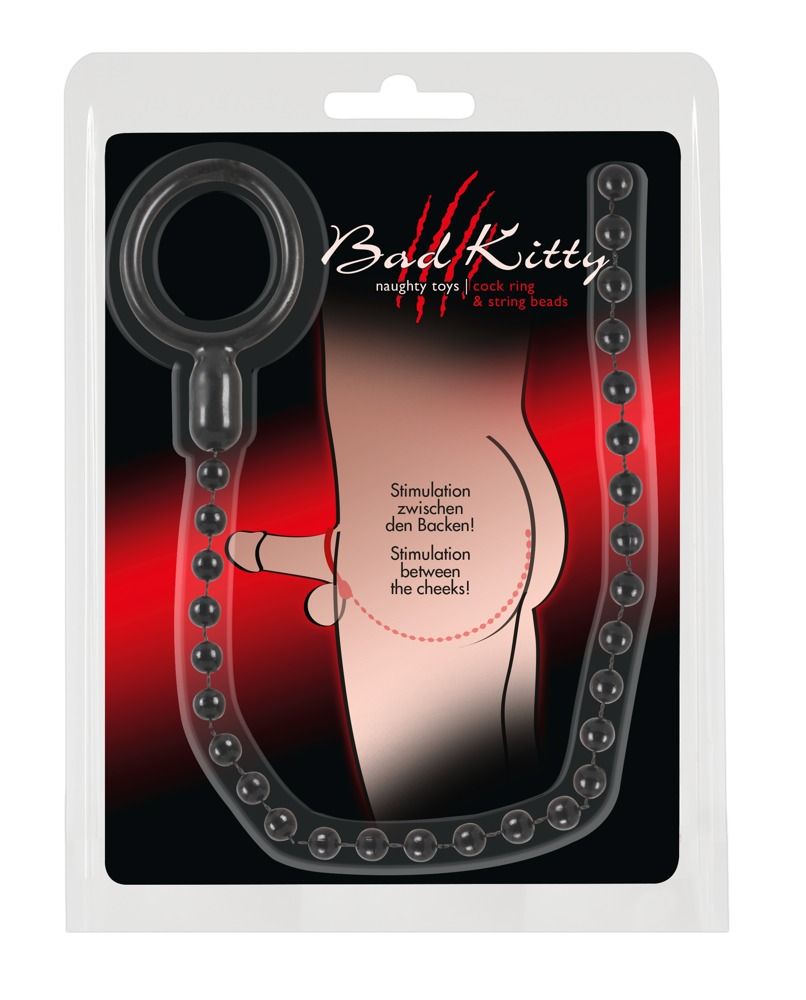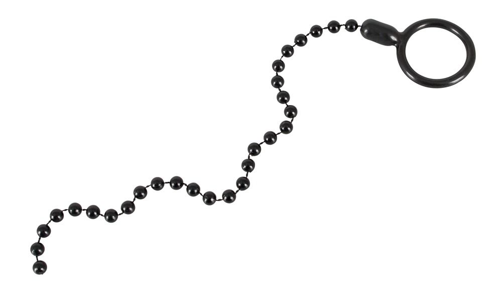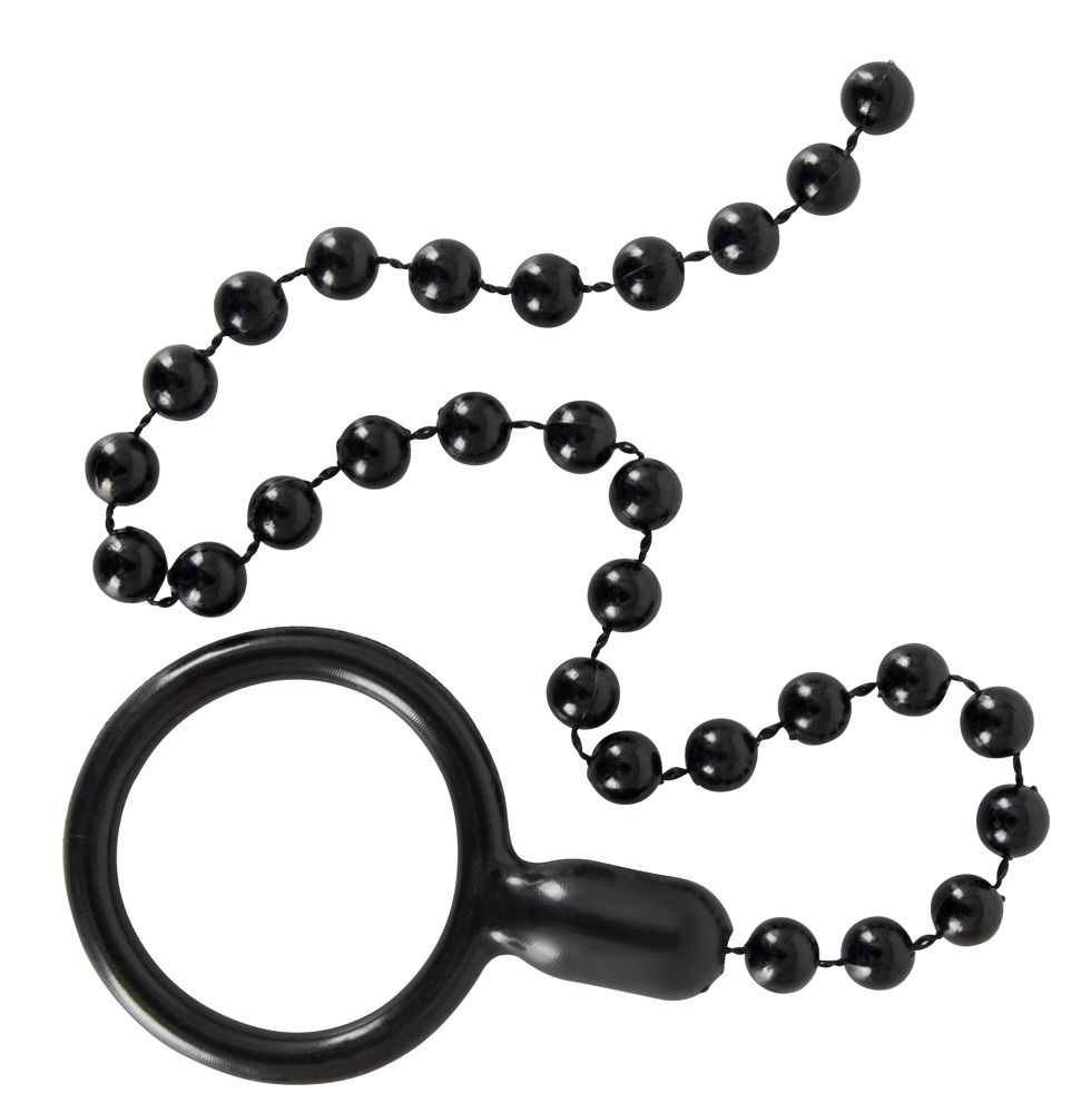 Эрекционное кольцо с цепочкой для стимуляции ягодиц. Эластичное эрекционное кольцо подходит под большинство размеров. Длина бус - 38 см.