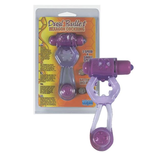 Фиолетовое эрекционное кольцо Dual Bullet Hexagon Cockring