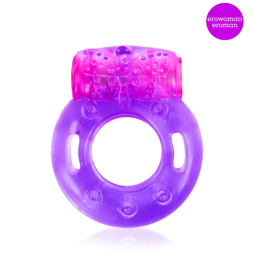 Купить Фиолетовое эрекционное виброкольцо с бабочкой Erowoman-Eroman по лучшей цене с доставкой - секс-шоп Ynunu.ru