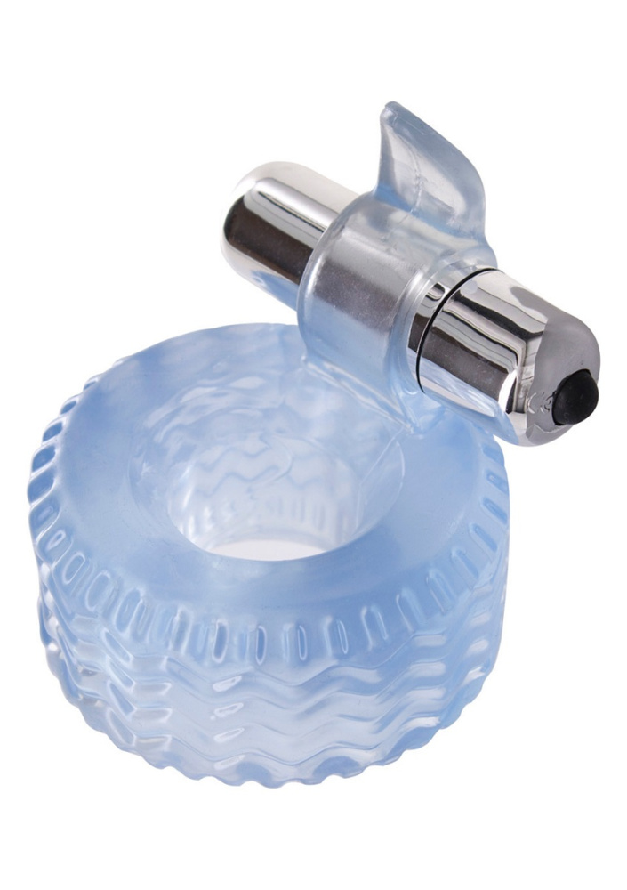 Эрекционное кольцо в виде шины. Рельефная поверхность обеспечит дополнительную стимуляцию партнерше, легко растягивается до нужного диаметра. Вибрация осуществляется при помощи вибропули, которая удобно расположена в петле у основания кольца (батарейки в комплекте).