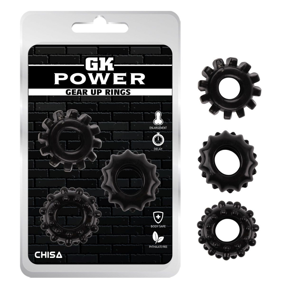 Купить Набор из 3 черных эрекционных колец Gear Up Rings Chisa по лучшей цене с доставкой - секс-шоп Ynunu.ru
