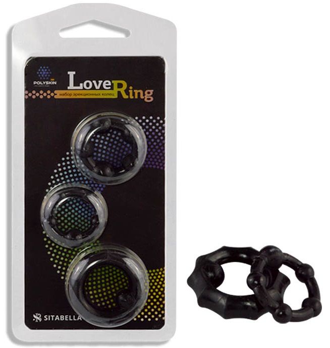 Купить Набор из 3 черных рельефных эрекционных колец Sitabella по лучшей цене с доставкой - секс-шоп Ynunu.ru