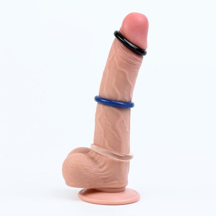 Набор эрекционных колец выполнен из гипоаллергенного силикона. Эрекционные кольца помогают предотвратить преждевременную эякуляцию. При слабой эрекции делают её ярко выраженной. Внутренний диаметр - 1,7 см.