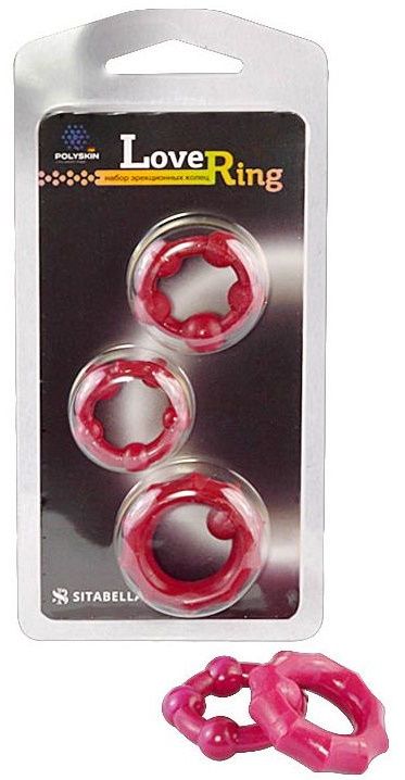 Купить Набор из 3 малиновых рельефных эрекционных колец Sitabella по лучшей цене с доставкой - секс-шоп Ynunu.ru