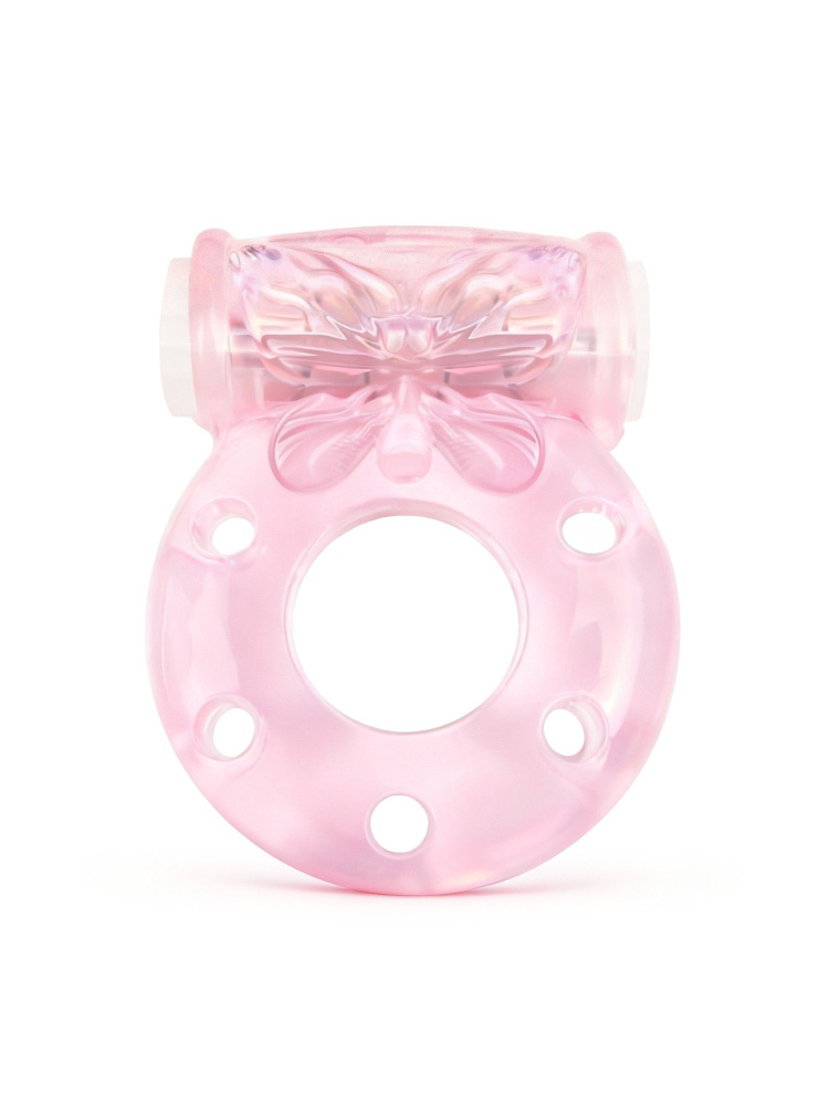 Розовое эрекционное виброкольцо с бабочкой